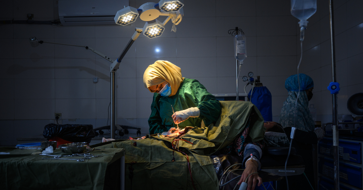 Medical doctor and surgeon Bibi Khadija Sadat completes a C-section after assisting another surgeon at the provincial hospital's maternity unit. August 27, 2025, Ghazni, Afghanistan. Elise Blanchard/Getty